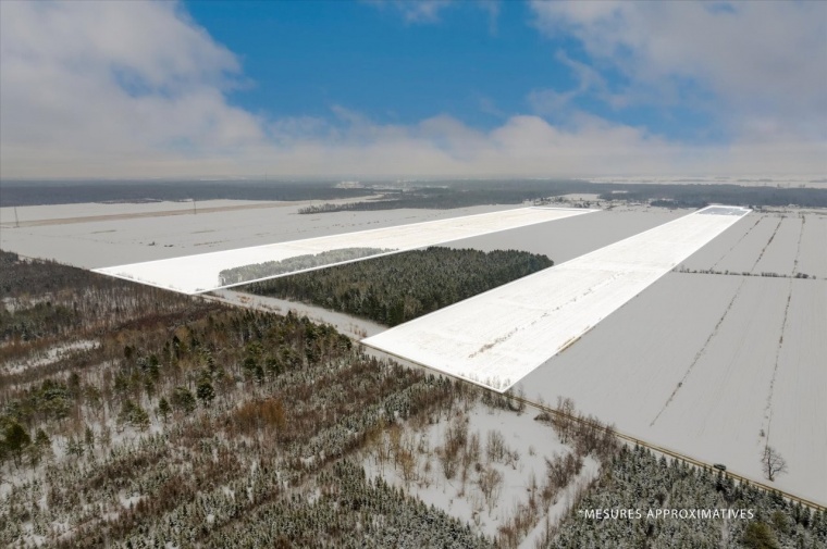 Sainte-Eulalie (Centre-du-Québec) : Ensemble de terres agricoles totalisant 188,55 acres dont 173.7 acres en culture, composé de trois parcelles situées sur le même rang et à courte distance les unes des autres. Ces terres de culture représentent une excellente opportunité pour les producteurs souhaitant développer ou consolider leurs activités agricoles. Les sols fertiles sont actuellement en culture de pommes de terre. Les terres de culture sont entièrement nivelées et bénéficient d’un système de drainage couvrant environ 107 acres. Des fossés bien entretenus, munis de ponts, facilitent les déplacements et assurent une gestion efficace des parcelles. Une jeune plantation de pins d’environ 7,5 acres, âgée de 7 à 10 ans, ajoute une section boisée appréciable à la propriété. Selon vos objectifs, la propriété se prête aussi bien au maraîchage qu’à la grande culture. Sa visibilité depuis l’autoroute 20 constitue un atout stratégique pour l’affichage et la mise en valeur d’une entreprise agricole. La possibilité d’implanter une éolienne sur l’un des lots pourrait également permettre de générer des revenus supplémentaires, si désiré (voir l’Annexe A1 dans les documents à télécharger). Bien localisées et offrant une grande polyvalence, ces terres agricoles ouvrent la porte à de nombreux projets. Communiquez avec nous pour en savoir plus ou pour discuter de votre projet. Plans des parcelles agricoles disponibles dans les documents à télécharger.