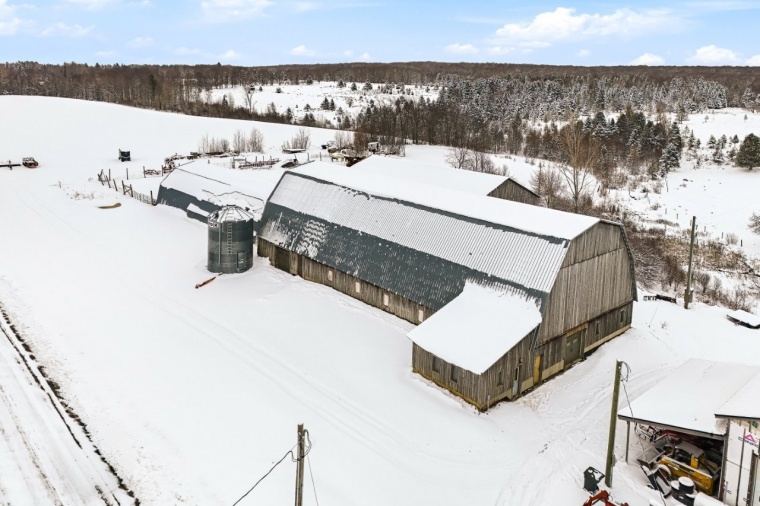 Cette ferme est dotée d’infrastructures agricoles complètes et fonctionnelles, conçues pour optimiser les opérations. On y retrouve une vaste bergerie de 50 x 110 pieds intégrant une laiterie de 15 x 20 pieds, une étable à foin de 40 x 100 pieds, une construction abritant une fosse de 85 x 52 pieds, ainsi qu’un garage récent de 26 x 30 pieds, idéal pour l’entretien et le rangement de la machinerie. Un silo d’une capacité de 40 tonnes complète l’ensemble pour faciliter la gestion des récoltes et de l’alimentation.