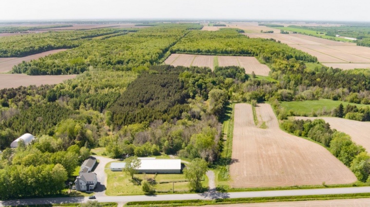 | RARETÉ SUR LE MARCHÉ | St-Jude (Montérégie): Remarquable domaine à vendre de 201,68 acres (238,72 arpents) à seulement 45 minutes de Montréal. La propriété à vendre vous offre une résidence haut de gamme de 4 chambres à coucher (construction 2016), une écurie de 5 boxes avec douche et manège intérieur, un garage triple avec atelier, un loft indépendant pour votre palefrenier, ainsi qu’une maisonnette pour vos invités. Il s’agit d’un produit très rare sur le marché qui plaira à tous les membres de la famille! Du côté de la terre, il y a environ 30 acres en culture (foin) et le reste en forêt mature. Elle comprend une importante section en érablière (non-exploitée), des plantations de pins rouges (15 000) et de chênes (2 000). La luxuriante forêt est traversée par la rivière Salvail et sillonnée par 15 km de sentiers pour vous y balader à cheval. Venez découvrir cette propriété coup de cœur qui cochera tous les critères sur votre liste!