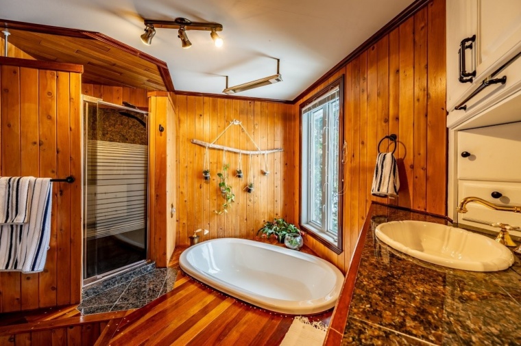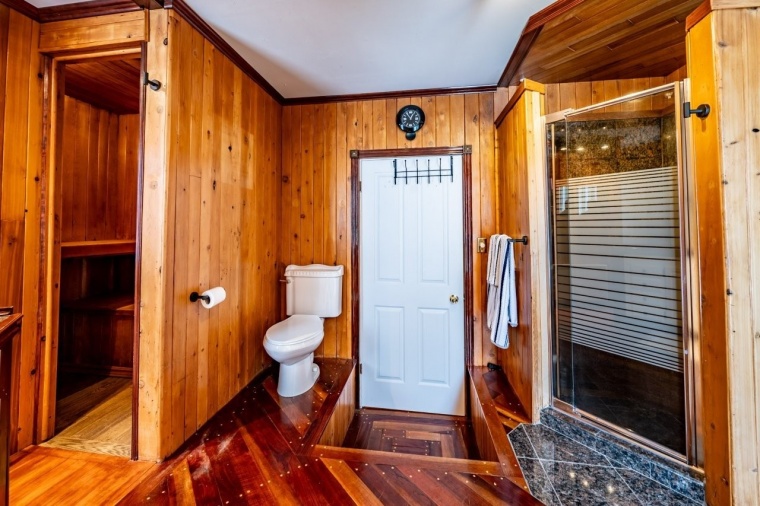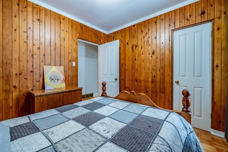 | rez-de-chaussée (1er étage) | Salle de bain | 12.1 x 9.1 pi | Bois | Attenante à la CP, sauna |
