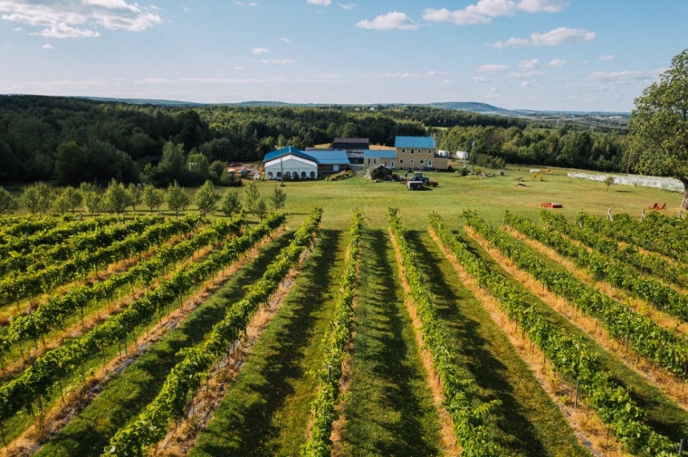 Estrie : Niché au bout d’un chemin paisible en cul-de-sac, ce vignoble de 68,13 acres est un véritable havre mariant production agricole, paysage enchanteur et opportunités d’affaires. Vignoble productif, érablière, cultures variées, infrastructures d’accueil et résidence familiale : tout est réuni pour concrétiser vos projets. ///UN VIGNOBLE PRODUCTIF ET BIEN ÉTABLI/// Planté il y a 12 ans, le vignoble compte 12 000 ceps répartis sur 4,6 hectares. Les vignes, en pleine maturité, offrent déjà un rendement solide et promettent encore plus dans les prochaines années. Le relief en pente orienté sud-ouest et le microclimat du site créent des conditions idéales pour la viticulture. Les cépages rustiques – Petit Perle, Marquette, Prairie star, Frontenac blanc, gris et noir – permettent de produire cinq variétés de vins : le rouge Burbank, triple médaillé parmi les meilleurs vins du Québec, un ambré fortifié également primé, ainsi qu’un rosé, un blanc et un second rouge. On y retrouve aussi divers produits dérivés tels que gelées, confitures, relish et confits. La production annuelle oscille entre 17 000 et 20 000 bouteilles, vendues à la SAQ, directement au vignoble et dans certaines épiceries. ///UNE PROPRIÉTÉ POLYVALENTE AUX MULTIPLES POSSIBILITÉS///Le vignoble n’est qu’une facette de ce territoire riche en potentiel. Entre autres, une érablière de 12 acres qui comprend +/- 1 500 entailles (dénombrement non officiel), offrant la possibilité de développer une activité acéricole complète. Des cultures diversifiées sur 7 acres (actuellement en foin), facilement convertibles pour d’autres productions. Plusieurs petits fruits et vergers tels que poiriers, framboisiers et plus de 3 000 plants de fraises. Et finalement, 2 étangs naturels, ajoutant charme et possibilités pour des projets récréatifs ou agrotouristiques. Ce domaine se prête aussi bien à l’agrotourisme qu’à l’hébergement, aux retraites en nature, aux événements privés ou encore à un centre de bien-être. ///DES INSTALLATIONS ADAPTÉES À L’ACCUEIL///