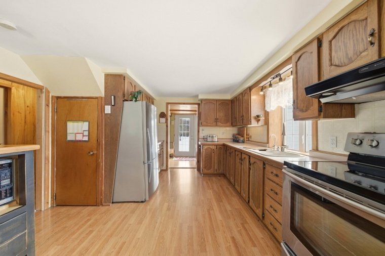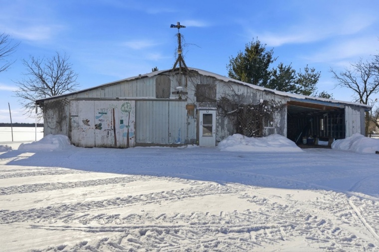 À l’extérieur, cette fermette propose des installations pratiques, dont un bâtiment agricole comprenant une section écurie qui abritait autrefois trois boxes, idéale pour des projets équestres ou de petite agriculture. Une section garage ainsi qu’un abri d’auto complètent les installations et offrent des espaces pratiques pour le rangement et les véhicules.